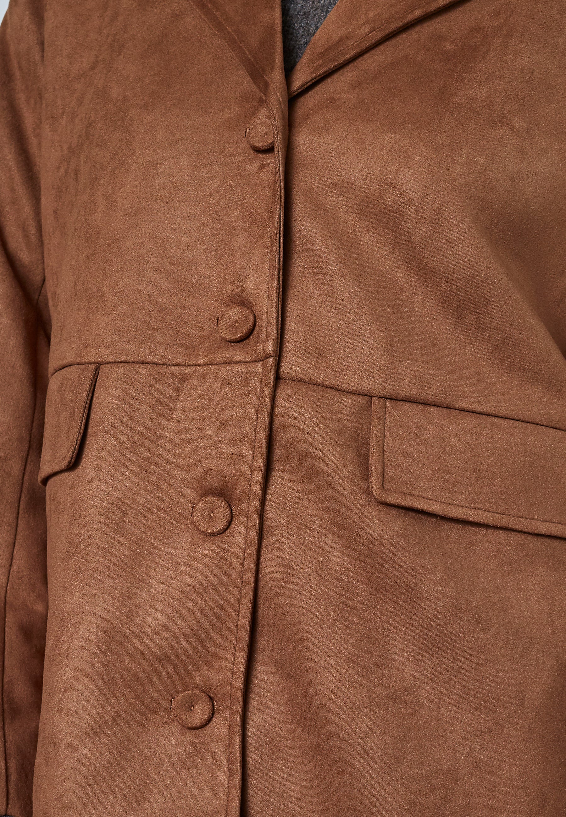 Den perfekta kavajjackan för en trendig look! Denna oversize jacka i välgjord fuskmocka ger en modern och sofistikerad stil, samtidigt som den är bekväm. Med sin något större passform får du en avslappnad och stilfull silhuett. Bär den till jeans för en avslappnat cool vardagsstil eller matcha med kostymbyxor för en mer elegant touch. Oavsett hur du stylar den blir jackan ett statement-piece som håller över tid.