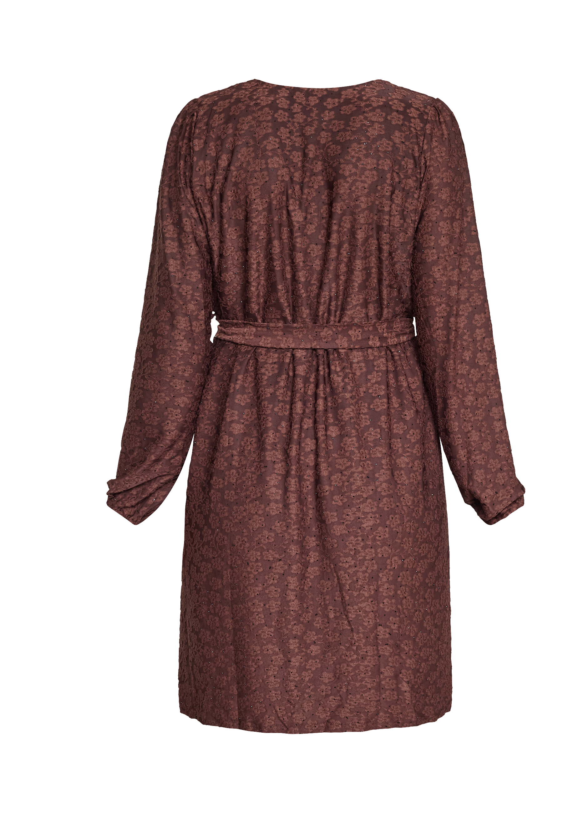Det detaljrika blommiga spetsmönstret i en varm chokladbrun ton ger klänningen ett exklusivt och elegant uttryck – diskret glittrande detaljer gör att den känns lika rätt till vardags med boots som till kvällens middag med klackar. Bär den med höga stövlar för en chic höstlook – eller med festliga smycken för en mer uppklädd stil. En tidlös favorit du kommer att älska säsong efter säsong.