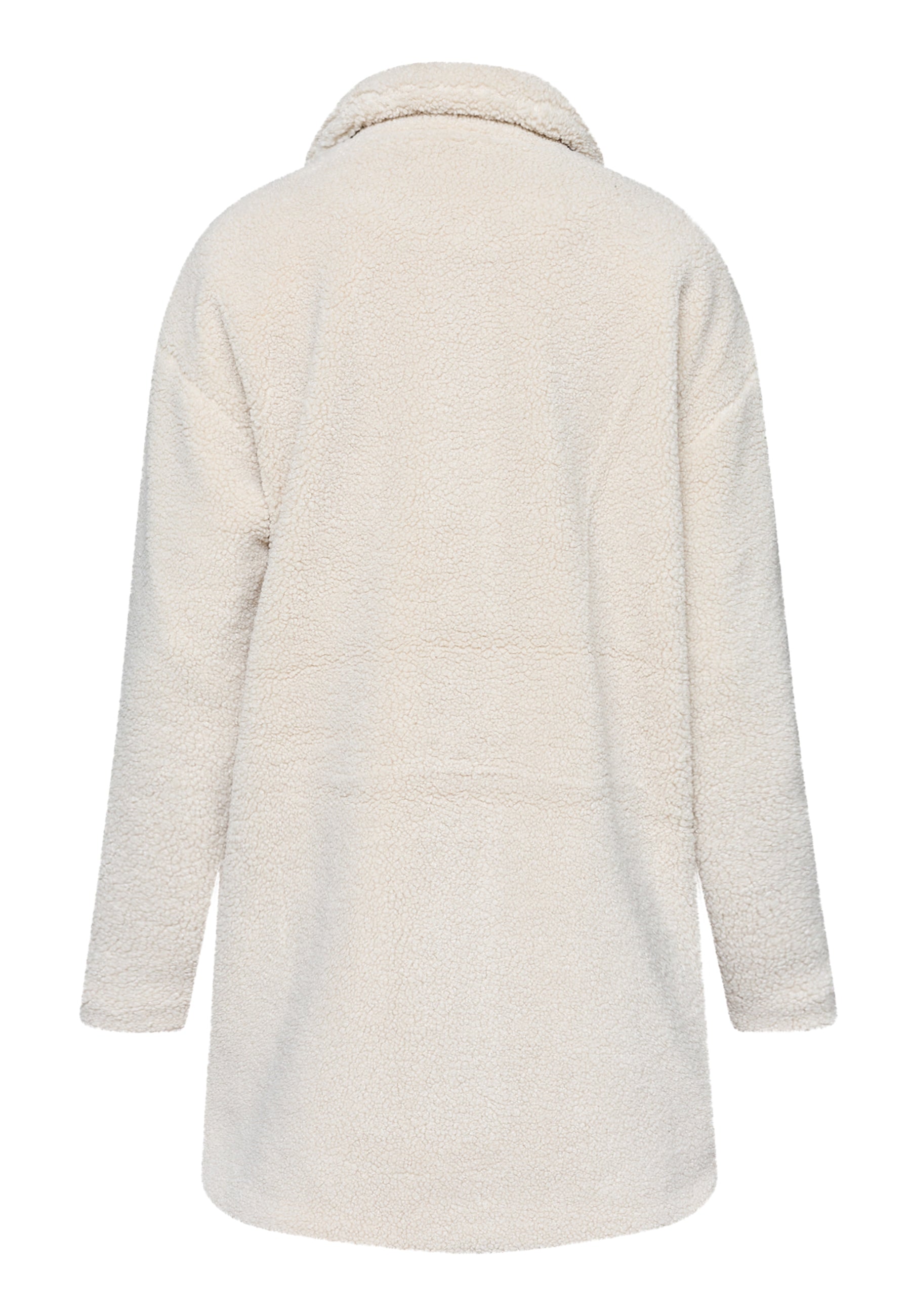 En mysig och trendig teddycoat som håller dig varm samtidigt som den ger en stilren look. Kappan har klassisk krage, stora knappar framtill och praktiska sidfickor. Den raka passformen gör den bekväm att bära över både stickade tröjor och tunnare jackor. En tidlös favorit som passar lika bra för vardagspromenader som för citylooken – en perfekt kombination av värme, komfort och stil.