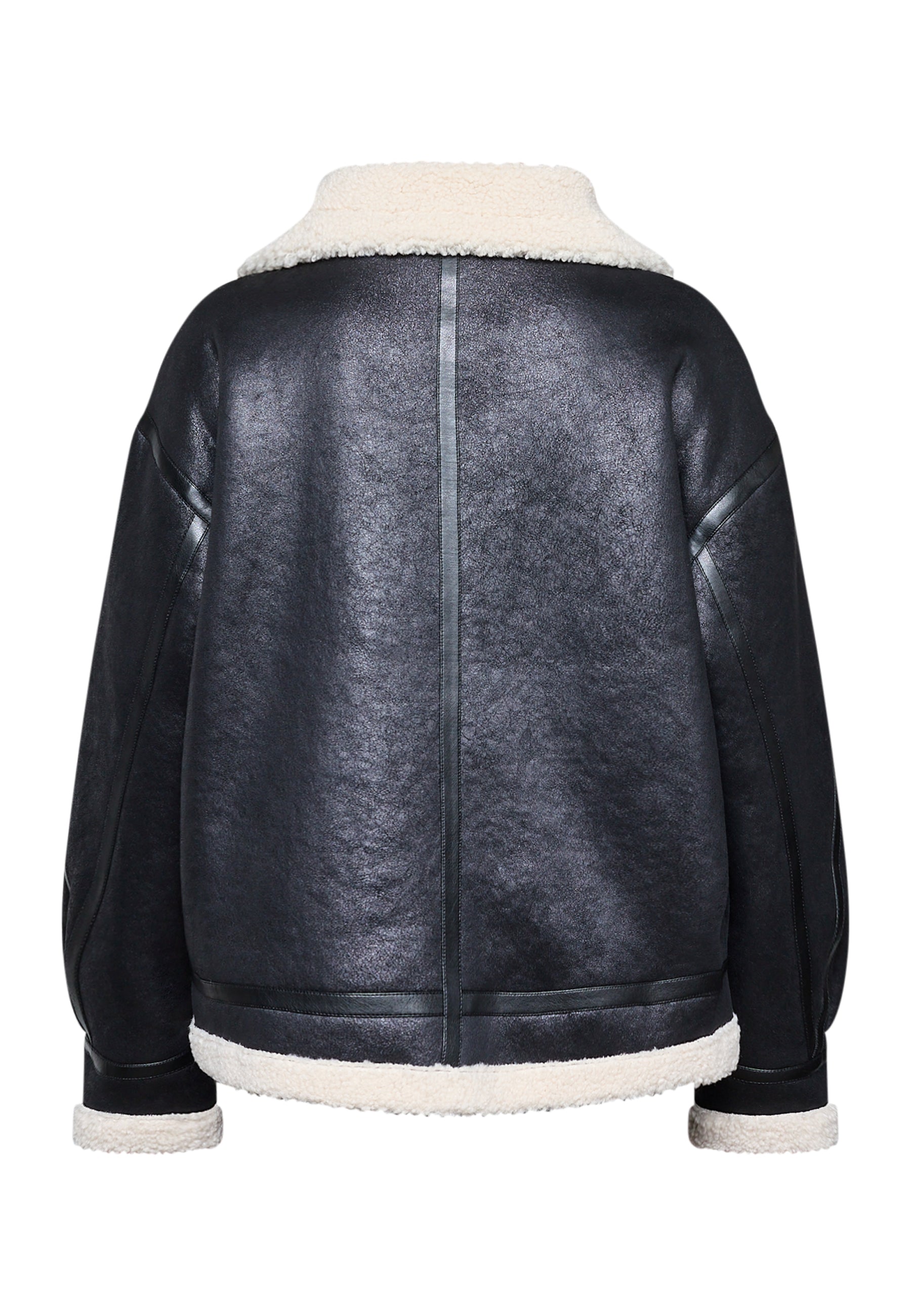 En trendig pilotjacka i svart med kontrasterande vitt teddyfoder som både värmer och ger en snygg, avslappnad look. Jackan har dragkedja framtill, högt krage med spänndetalj samt fickor i sidan. Den något oversized passformen gör den perfekt att bära över både stickade tröjor och tunnare toppar. En mångsidig jacka som kombinerar trend och komfort – perfekt för både vardag och citystil under kyliga dagar!