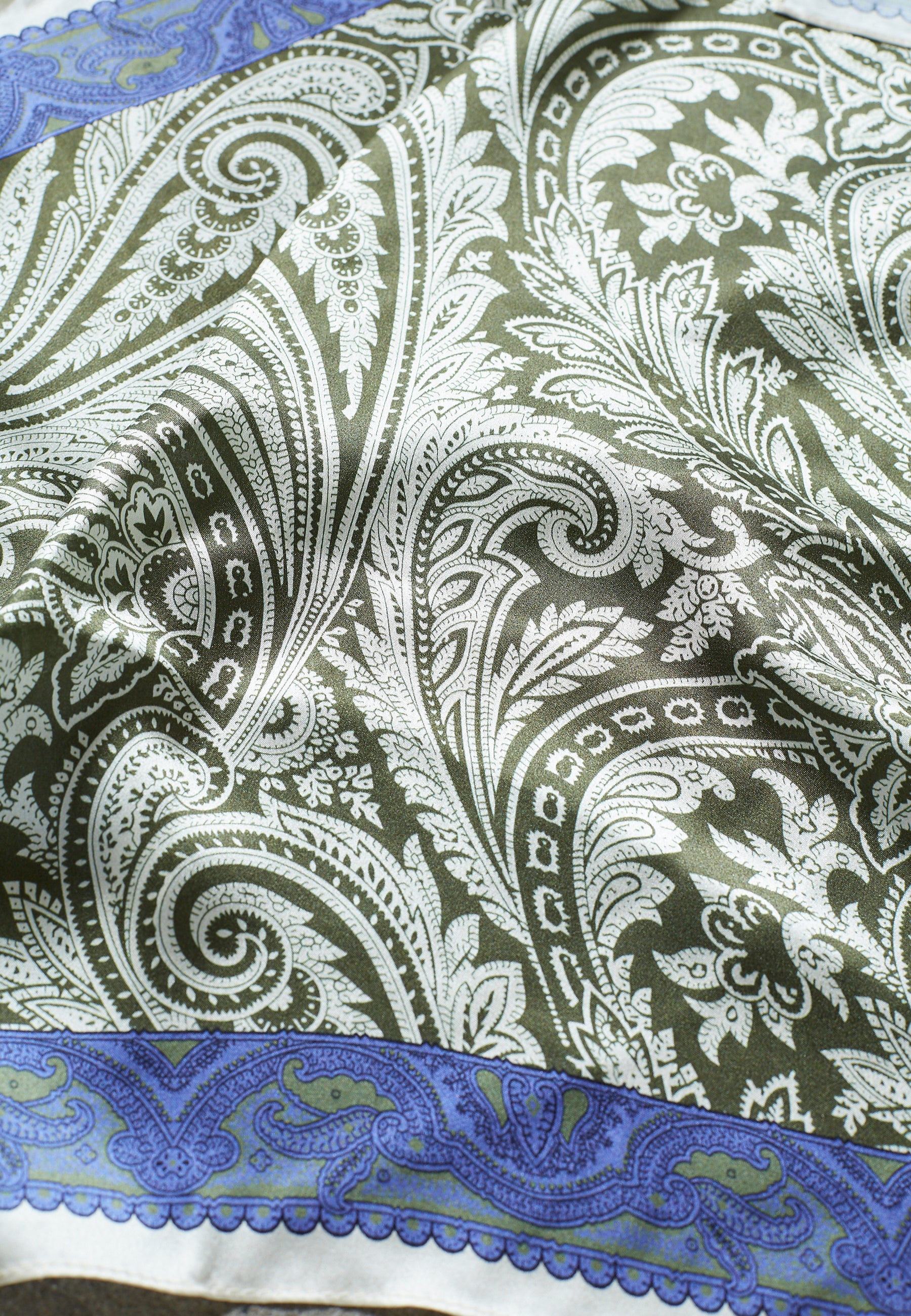 En klassisk scarf i sidenlook med ett exklusivt paisleymönster. Den skimrande ytan och de rika färgerna gör den till en tidlös accessoar som lyfter vilken outfit som helst.