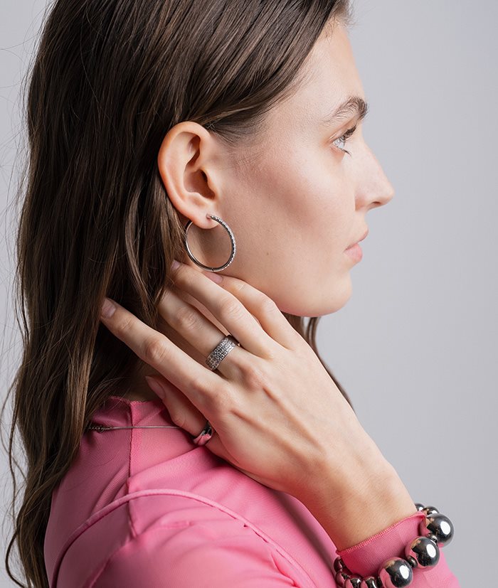 Stilrena och klassiska blanka creoler med det där lilla extra. Framtill sitter en rad med infattade kristaller som sätter extra strass på vardagen!